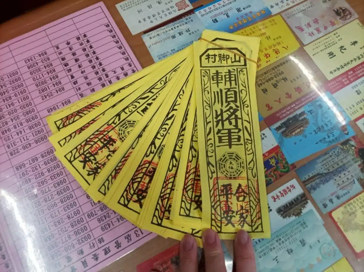Elvira plays an important role in helping believers draw lots, or pua̍h pue (擲筊). In drawing lots, believers communicate with deities or ancestors by throwing a pair of crescent-shaped wooden blocks. The approval of deities or ancestors is signaled by siūnn pue (聖筊), wherein one wooden block lands flat side up and the other rounded side up, and Elvira will assist believers in explaining the meaning of the lots poem (籤詩) and help them seek guidance. During General Fushun’s annual birthday festival—starting on the 14th of September based on the lunar calendar, typically sometime in October according to the Gregorian calendar—Elvira leads preparations several weeks in advance for the biggest event of the year, which draws devotees from across Taiwan.