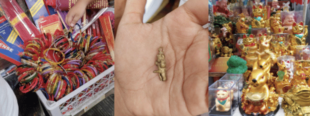 I also noticed a young woman asking if the vendor had sungay ng usa, or deer horn for curing rabies, and another woman who looked for a Niñong Hubad, literally translated as “naked Santo Niño,” something similar to a “love charm” (gayuma). Other items on display include lucky charms based on Chinese zodiac or astrology, a wide array of herbal medicines, and miracle or all-cure essential oils. There is clearly a market for a vast array of spiritual and religious items, along with the articles approved by the church.[17]