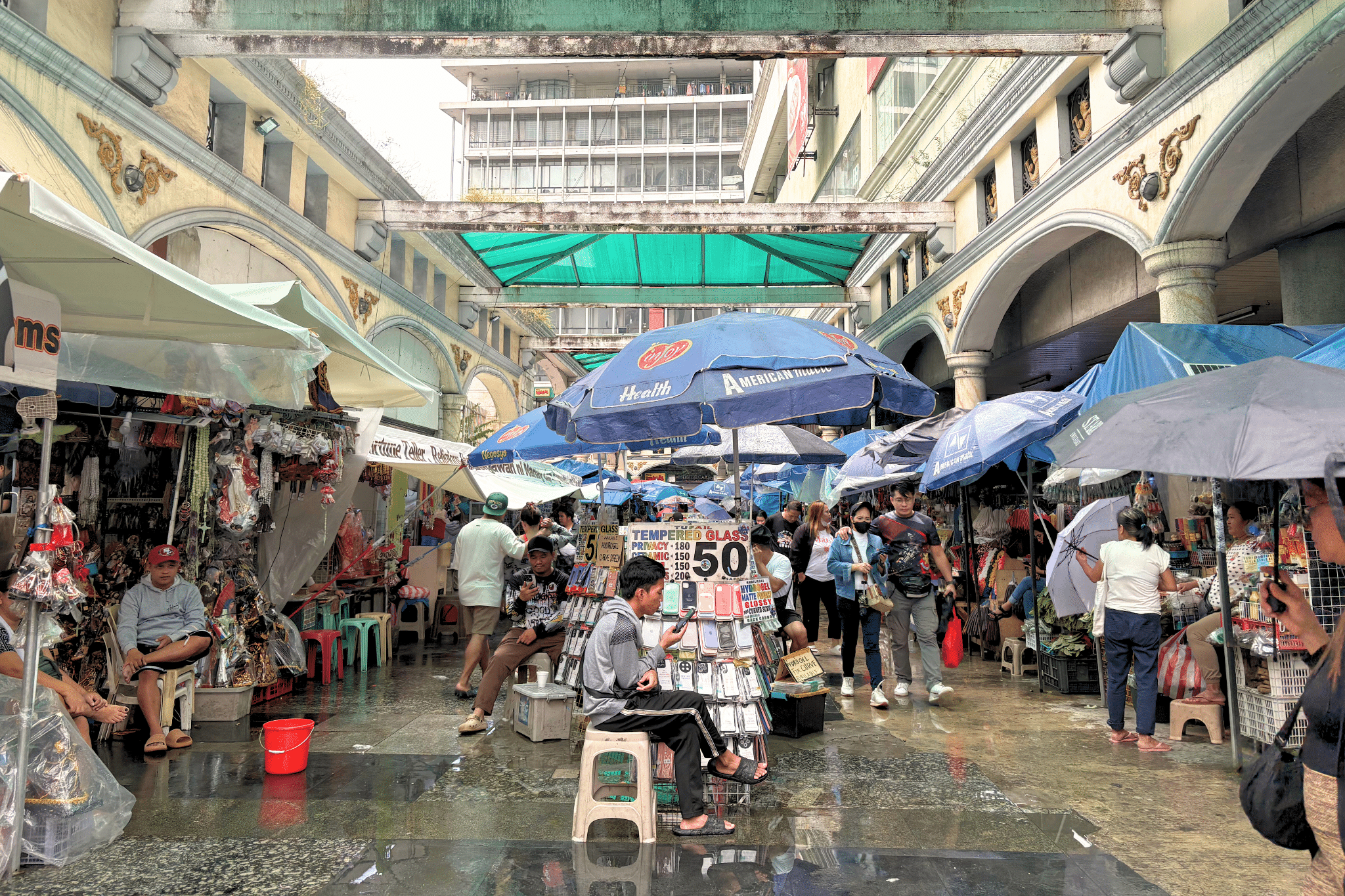 Quiapo is equally known as a commercial hub, with products ranging from optical clinics to ready-to-wear clothes, and to motorcycle parts dealers. Scholars have also examined the market for religious articles, folk medicine, and the “occult,” and other products and services outside the church.[13] Calano, for instance, explored the dialectic relationship between the faith to the Nazareno (pananampalataya) and hanapbuhay, or livelihood, showing how devotion and commerce mutually reinforce one another in constructing Quiapo as both a sacred and economic space.[14]